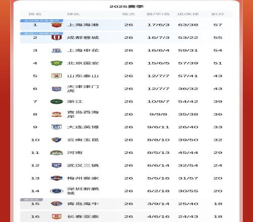 从整体局势来看,这三场补赛并未对争冠格局产生实质性影响。上海海港依旧稳坐争冠主动权的宝座。保级端则变化较大,梅州客家攀升到第13名,青岛海牛深陷降级区同时,也把长春亚泰再度挤到垫底位置。