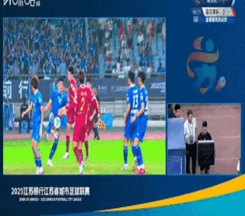 南京队第62分钟由司俊琰打破僵局,1球领先的优势一直保持到尾声。直到伤停补时第6分钟,冯伯元禁区内犯规,裁判经过VAR回放,吹罚点球,连云港队一蹴而就扳平比分。这也是“苏超”首次引入VAR机制。