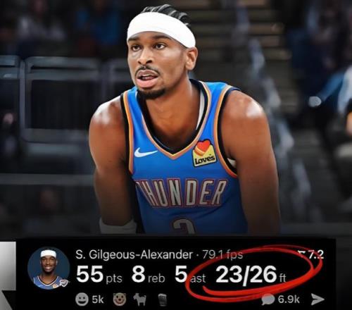 新赛季至今,亚历山大累计得到580分,高居联盟第一;先后得到15次单场30+,联盟第一;先后8次在30分钟内单场砍下30+,NBA历史第二,仅次于字母哥一人。