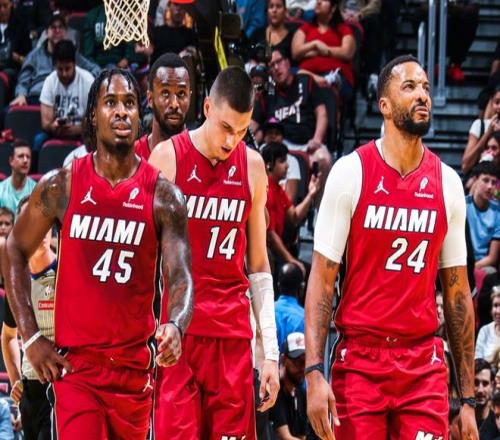 热火战绩同为14胜10负,排名东部第6位,场均得分122.3分,场均失分118.3分,客场战绩为4胜7负。